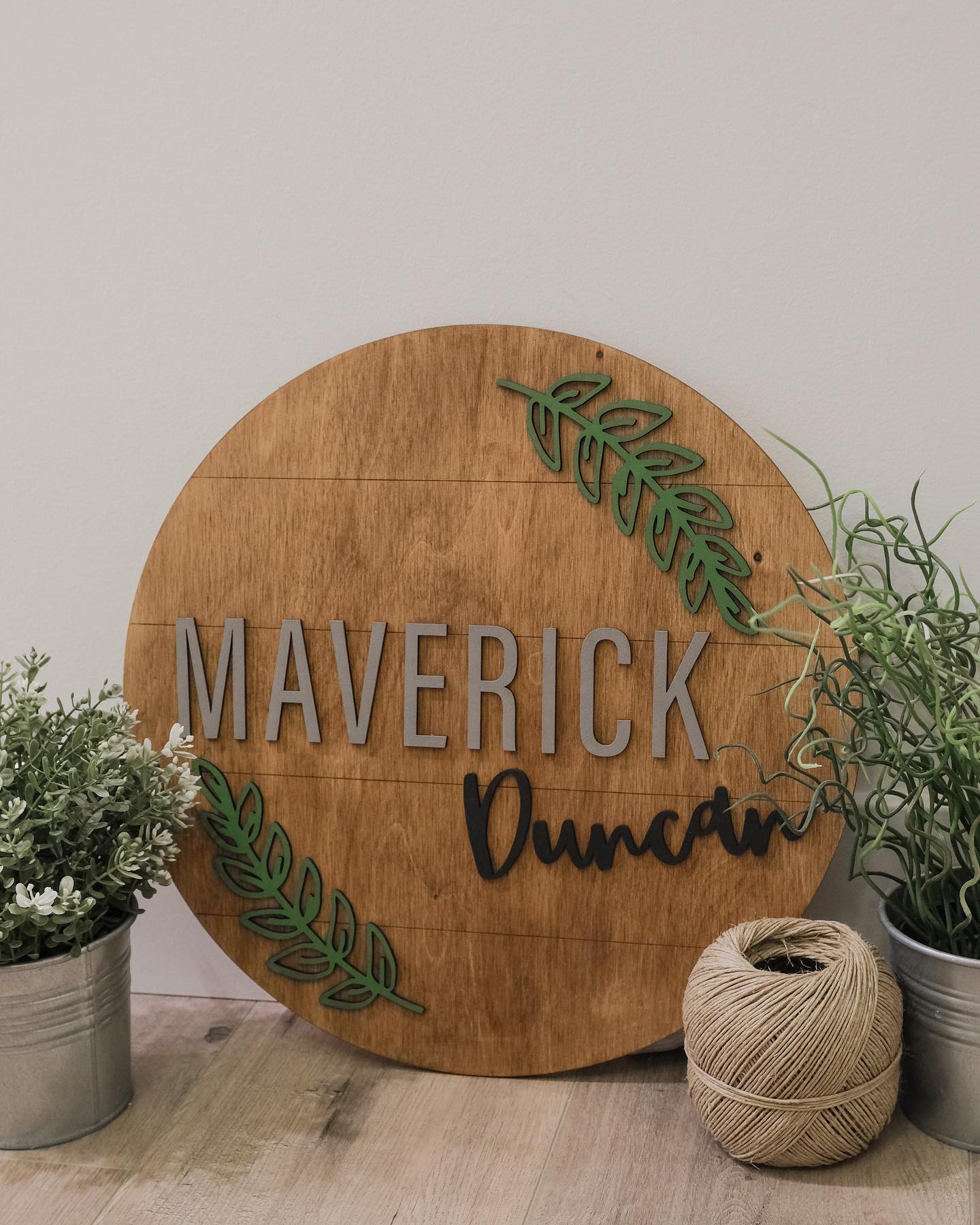 Customized Round Baby Nursery Name Sign with leaves or branches